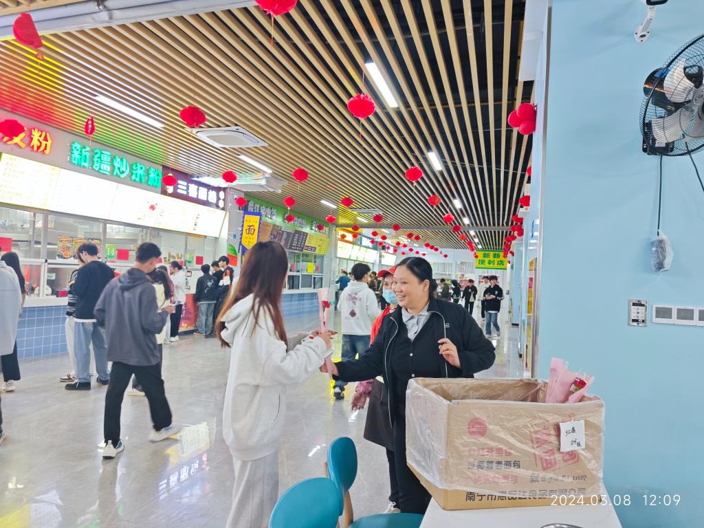 (后勤保障服务中心讯 黄少雄文/图)三月里,校园春意盎然。为庆祝“三八”国际妇女节,3月8日,学校各食堂开展美食赠送活动,前来就餐的师生在享受美食的同时,也感受到了食堂的浓浓暖意和衷心祝福。