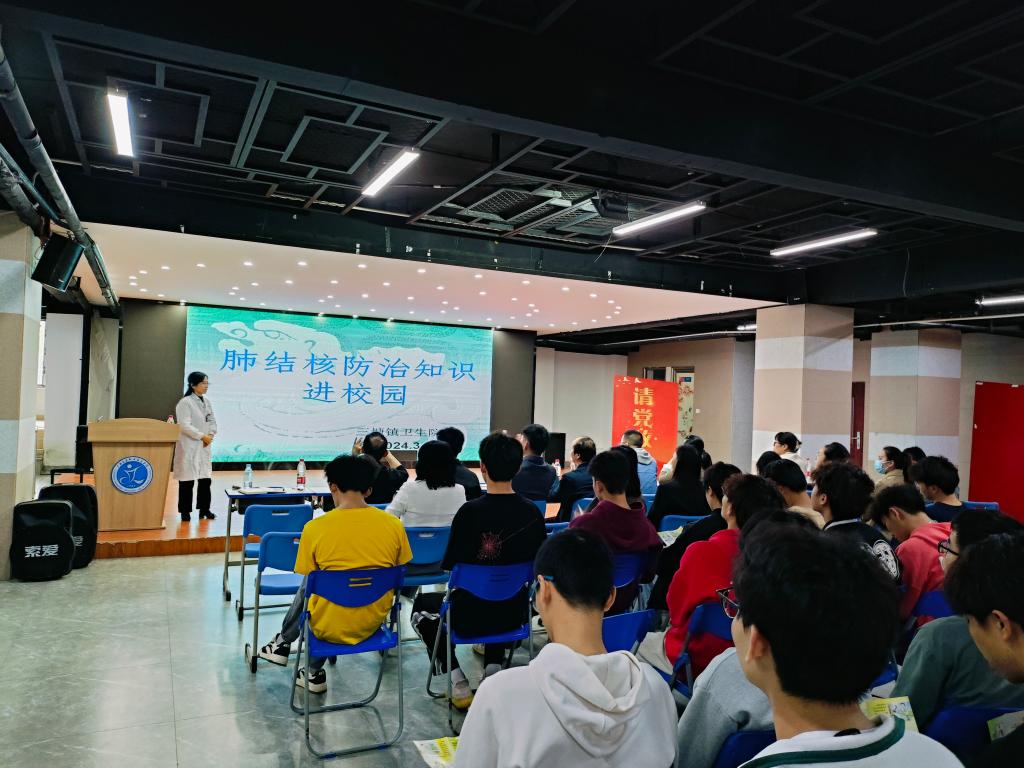 (后勤保障服务中心讯 杨继红 文/图)为深入贯彻党的二十大精神,倡导全社会关注结核病防治,3月22日,在第29个“世界防治结核病日”来临之至,后勤中心党支部、学工处党支部、工会党支部与三塘镇卫生院党支部在我校东区青年活动中心开展“你我共同努力 终结结核流行”党建共建主题党日活动,后勤中心副主任、支部书记李锦、副主任白克云、学工处副处长龙建强、黄庆华、三塘镇卫生院副院长冯以真及党员教师代表、学生代表共计100余人参加此次活动,活动由李锦书记主持。