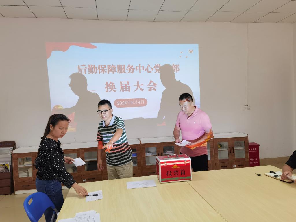 (后勤保障服务中心讯 黄少雄文/图)为做好后勤中心党支部新一届支部委员换届选举工作,经报学校党委批准,6月4日下午,后勤中心党支部按照《中国共产党章程》《中国共产党党和国家机关基层组织工作条例》《中国共产党基层组织选举工作暂行条例》的相关规定和上级党组织的有关文件要求,在北区保卫会议室召开党支部换届选举大会,学校机关二总支纪检委员吴飞同志莅临大会指导,后勤中心全体党员参加了会议。大会由支部书记李锦同志主持。