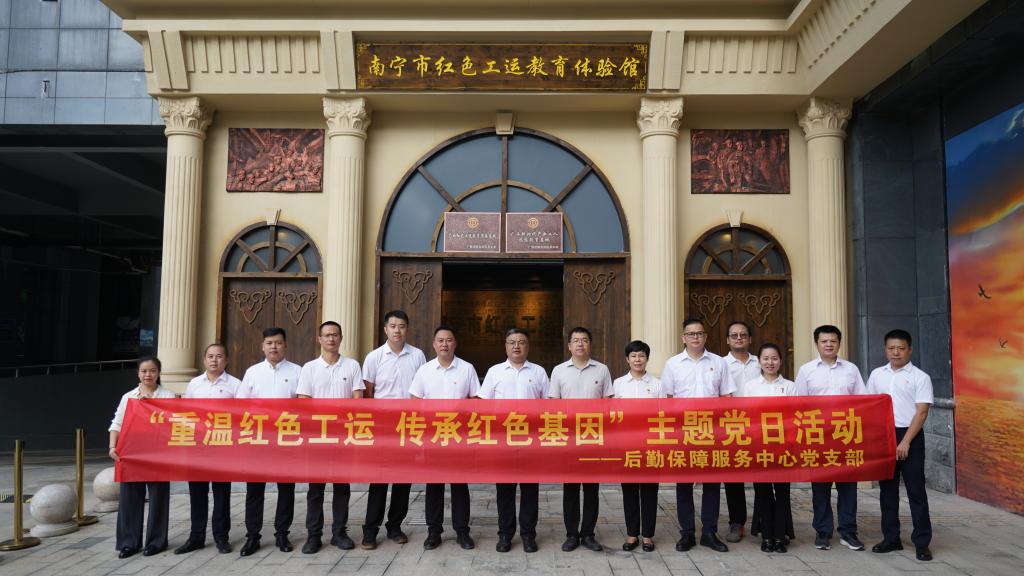 (后勤保障服务中心讯 黄少雄文/高长亮图)为庆祝中国共产党成立103周年,深入学习贯彻习近平新时代中国特色社会主义思想,激励广大党员干部弘扬伟大建党精神,加强党员理想信念教育和爱国主义教育。7月6日上午,后勤中心党支部前往南宁市红色工运教育体验馆开展“重温红色工运 传承红色基因”主题党日活动。