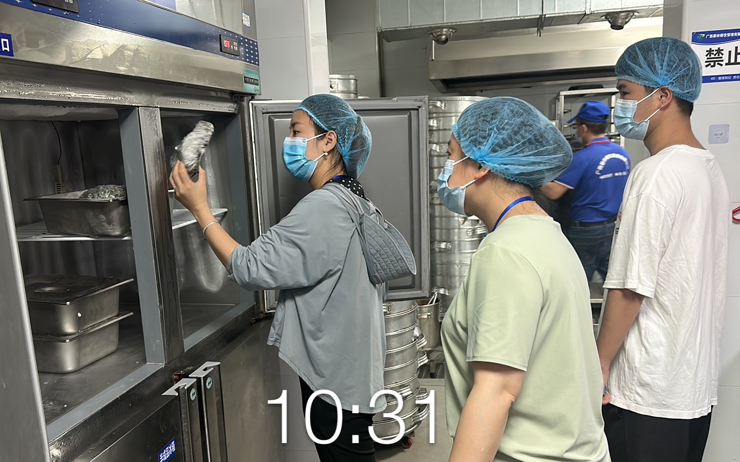 (后勤保障服务中心讯 王宇冰文/图)“五一”假期将至,为切实保障师生饮食安全,营造健康和谐的校园环境,4月29日 - 30日,广西交通职业技术学院后勤中心膳食科联合医务室、保卫科、资产中心组建专项检查小组,对昆仑校区和园湖校区各食堂、超市及各类供餐场所开展全面、细致的节前安全大检查。本次行动以食品安全、水电燃气安全、消防安全、环境卫生为核心,秉持“严排查、细整治、保安全”原则,同时组织开展食品安全知识与餐饮服务能力提升专项培训,通过“检查 + 培训”双轮驱动,全方位筑牢校园食品安全防护网。