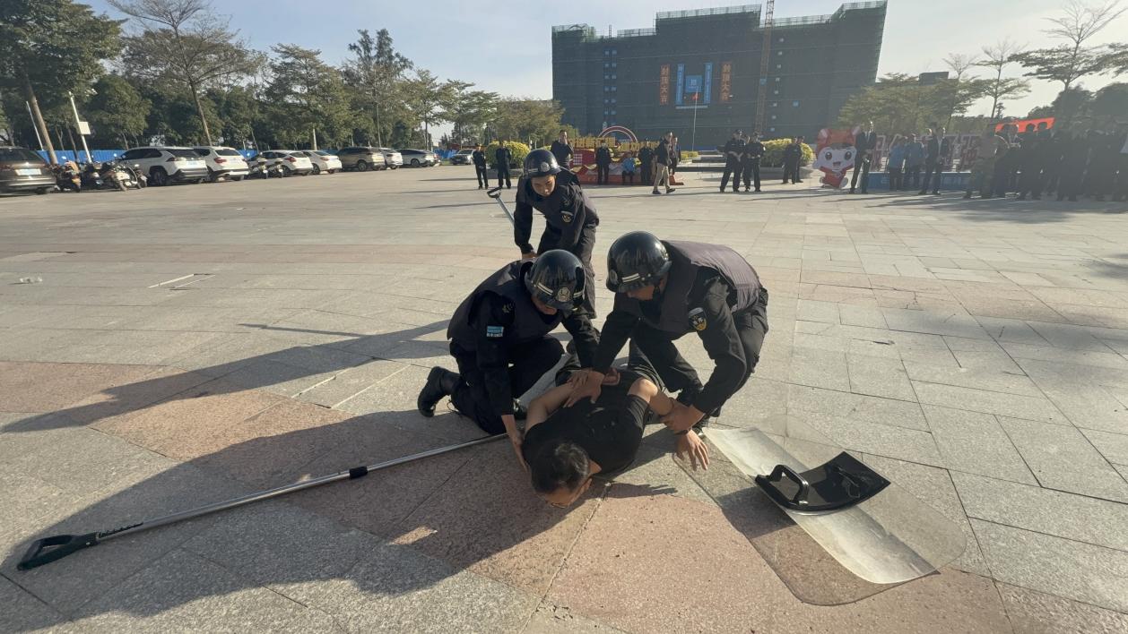 (后勤保障服务中心(保卫处)讯 高长亮文/图)为提升校园应对突发暴力事件的应急联动与处置能力,保障全校师生生命财产安全,近日,后勤保障服务中心(保卫处)联合三塘派出所、物业安保人员在昆仑校区北大门组织开展反恐防暴应急演练,各小组分工协作、密切配合,演练取得预期效果。