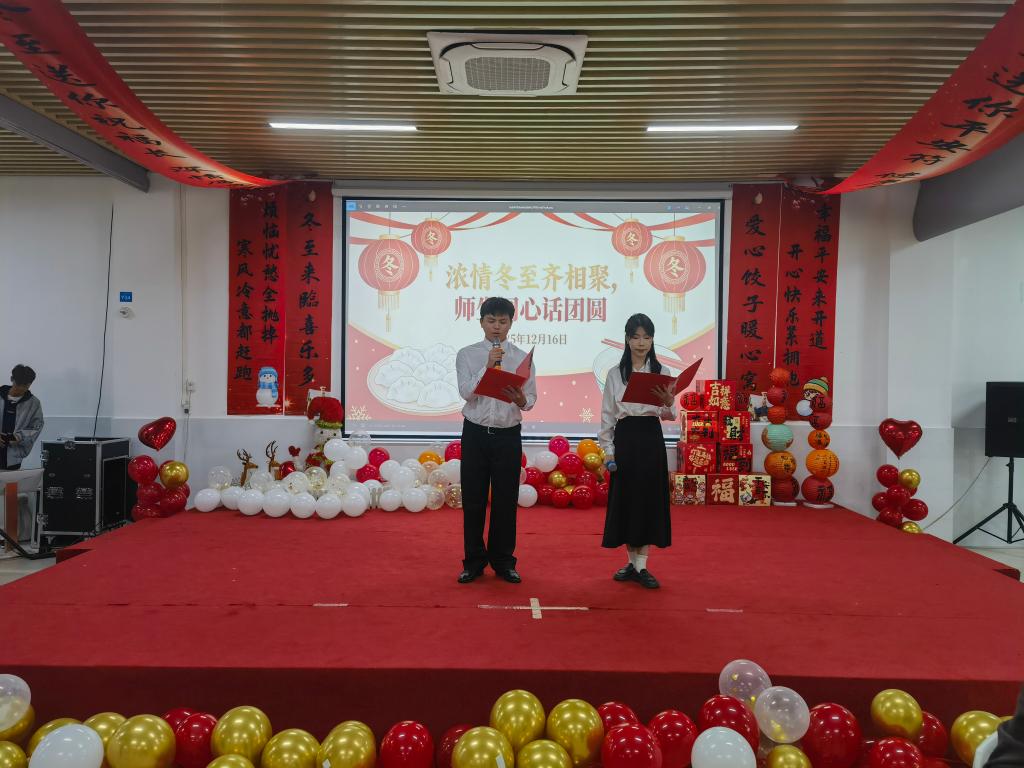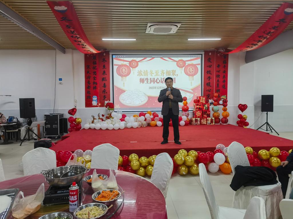 活动伊始,戴晓云副校长向现场全体师生员工致以冬至佳节的诚挚问候与美好祝福。他表示,冬至作为中华民族数千年流传的传统节气,不仅承载着“阴极之至,阳气始生”的自然智慧,更凝结着“阖家团圆、守望相助”的文化基因,是涵养家国情怀、传承中华文脉的重要载体。同时,他希望同学们以此次活动为契机,厚植文化自信,在传承中创新、在团结中奋进,成长为有温度、有情怀、有担当的交院学子;也期待全校上下继续以传统节日为纽带,凝聚起师生同心、砥砺前行的强大合力,共同描绘学校高质量发展的崭新篇章。