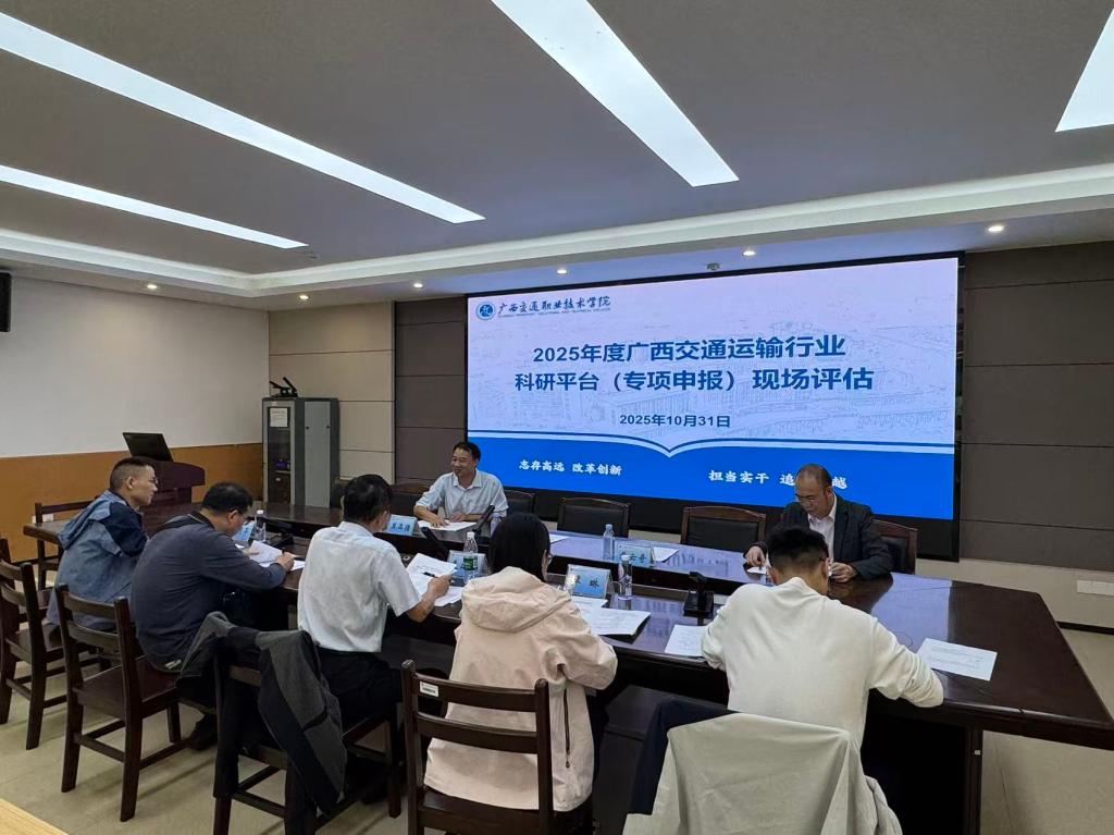 10月31日,自治区交通运输厅来我校开展2025年度广西交通运输行业科研平台(广西交通职业技术学院专项申报)现场评估工作。评估专家现场实地核查了我校的低空多场景融合重点实验室重点实验室、北斗应用研发中心、交通绿色材料研发中心及数智公路养护技术研发中心,听取了上述科研平台简要汇报,并就汇报情况讨论形成现场评估意见。