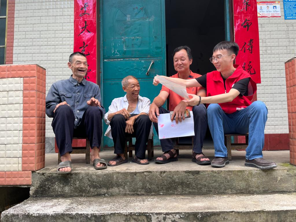 村里的桑蚕养殖产业承载着村民的殷切期盼,目前已有35户蚕农投身其中,还有一个220亩的村集体种桑基地,作为国家重点研发计划项目,这里成为村里走向致富路的又一密钥。两人到村后没有片刻停歇,立即开启走访之路。一户户叩响蚕农的家门,像久别重逢的老友般与他们围坐交谈。面对蚕农们诉说的养殖难题,他们认真记录,眼神中满是关切;在推广“茧易通”销售平台时,队员们耐心地握着村民略显粗糙的手,一步一步演示注册流程,直至老人们也能熟练操作。