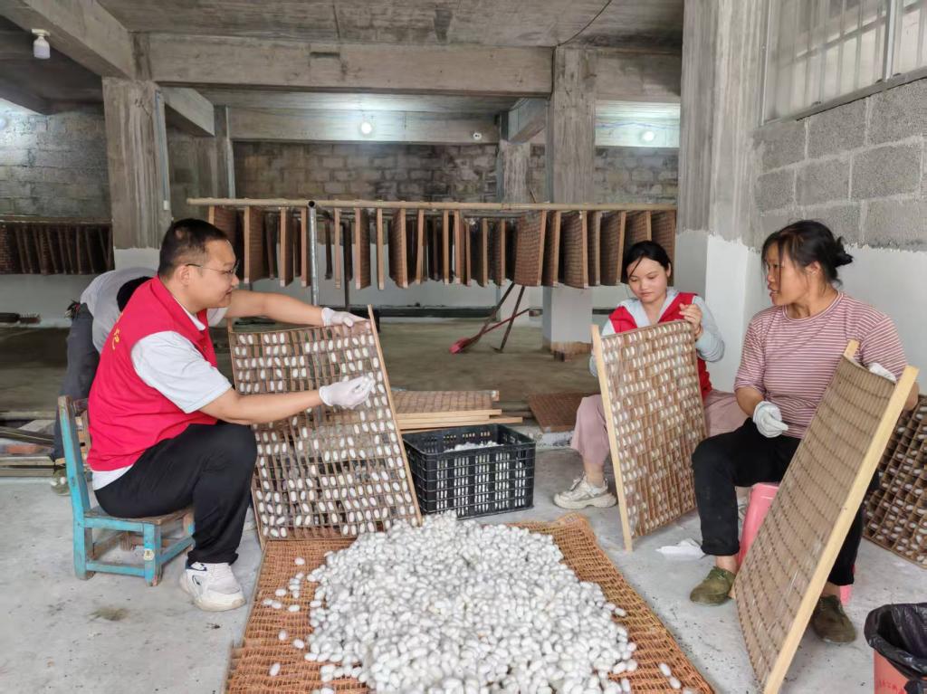 当晨雾还未散尽,驻深洞村的第一书记黄海泉和工作队员吴致宇已踩着露水出门。自驻村以来,他们俩便以饱满的热情投入工作,将目光投向村里的新兴桑蚕养殖业,决心以此为突破口,为深洞村振兴注入新活力。