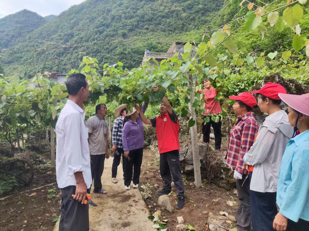 立秋时节,凉风送爽,天然村600亩山野毛葡萄藤上缀满成熟的果实。驻村第一书记鲍桂勇初到村里,便一头扎进葡萄园,他深知,此时正是管护的关键期。为了让葡农们丰收无忧,他多方奔走协调,不仅邀请技术专家深入葡萄园,针对水肥管理、病虫害防治、副梢处理等关键环节进行现场教学,还凭借自己的路桥专业特长,规划葡萄园产业路的升级改造,确保运输畅通无阻。“鲍老师带着专家手把手教我们,今年葡萄丰收更有盼头!”种植户们眼里满是喜悦与期待。