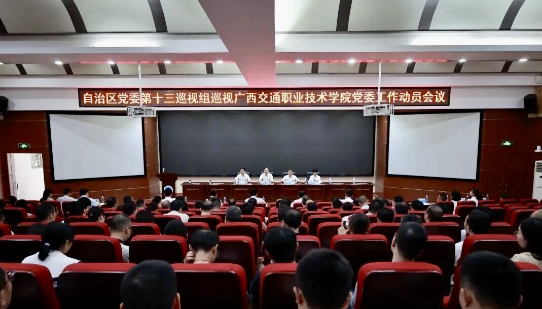 根据自治区党委统一部署,2025年9月26日上午,十二届自治区党委第八轮巡视第十三巡视组巡视广西交通职业技术学院党委工作动员会召开。自治区党委第十三巡视组组长陆海生受自治区党委巡视工作领导小组委托,就深入学习贯彻习近平总书记重要讲话精神,自觉接受巡视监督,支持配合本轮巡视工作提出明确要求,并通报本轮巡视的主要任务和工作安排。广西交通职业技术学院党委书记陈湘如主持会议并作表态发言。