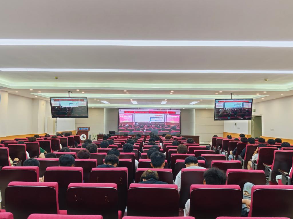 本次宣讲会以主会场现场宣讲和各分会场视频同步直播的方式进行,全体在校生听取报告会,实现了理论宣讲青年群体全覆盖。