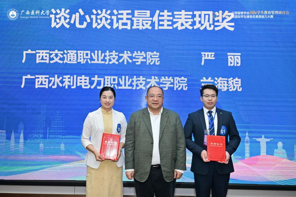 (东盟国际学院 讯 文静琦/文)11月26日,2025广西首届国际学生辅导员素质能力大赛在南宁圆满落幕——这是广西首次专为国际学生辅导员打造的专项赛事,全区本、专科院校的精英团队同台竞技,展开了一场兼具专业性与创新性的育人能力比拼。我校国际学生辅导员严丽、冯赞源、文静琦组成的团队全力以赴,凭借扎实的专业素养与默契的协作,一举斩获团队特等奖,其中严丽更是获得个人特等奖、谈心谈话最佳表现奖两项殊荣,用亮眼成绩书写了我校国际学生管理队伍的育人风采。