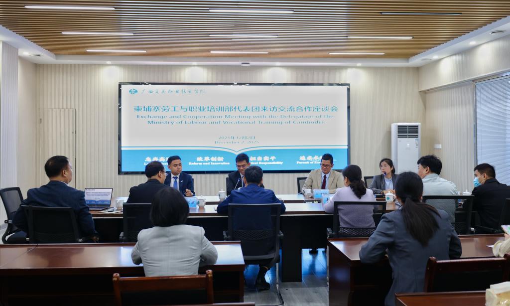 (东盟国际学院 讯 范星硕、杨洁/文)12月2日,柬埔寨劳工与职业培训部代表团到我校参观交流。学校党委书记陈湘如出席座谈会。