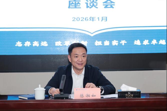 参观结束后,全体人员到学校园湖校区开展座谈。会上,陈湘如书记向党外人士通报了学校2025年来在党的建设、“双高”建设、教育教学改革、人才队伍建设、社会服务和校园基本建设以及“十五五”规划编制等方面主要工作和成绩,分析了当前学校高质量发展所面临的机遇和挑战,对党外人士在学校改革发展进程中做出的积极贡献和展现出的责任担当给予了高度评价。