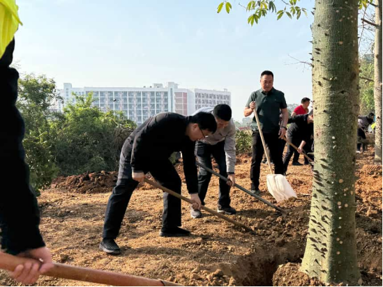 活动过程中,校领导与在场学生亲切交流,结合树木生长规律勉励同学们要向下扎根、向上生长,努力成长为可堪大用、能担重任的高素质人才。经过一个多小时的劳作,8株挺拔的木棉树、20余株桂花树“安家落户”,在和煦春风中舒展身姿,为春日校园增添了一抹鲜亮的绿色,呈现出勃勃生机。
