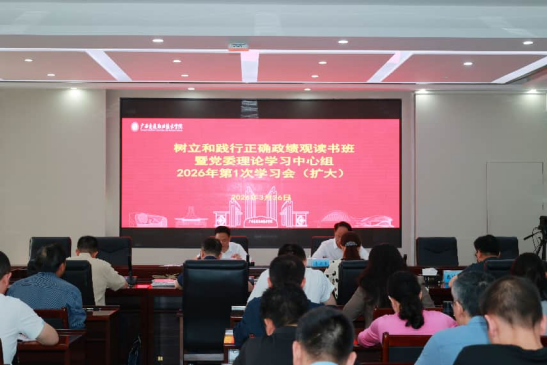 (党委宣传部 讯 梁静芸/文)3月26日,学校在园湖校区图书馆四楼会议室召开树立和践行正确政绩观读书班暨党委理论学习中心组2026年第1次学习会(扩大)。学校党委书记陈湘如主持会议并讲话,强调指出要大力倡导和践行“四个一切”的工作作风,使之成为全校各级干部正确政绩观的具体实践,成为新征程上优良校风的重要标记。党委副书记、校长李文勇,党委副书记、纪委书记麻新桃,副校长黄云奇、戴晓云、邱实,全体中层正职干部参加学习。
