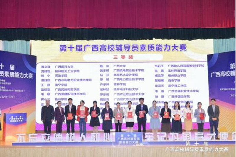 讯 10月20日至22日,由广西壮族自治区教育厅主办,教育部高校思想政治队伍研修培训中心(广西师范大学)承办的第十届广西高校辅导员素质能力大赛在广西师范大学举行,我校交通信息工程学院辅导员韦唯荣获大赛三等奖。