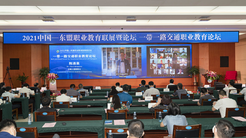 (东盟国际学院 讯)9月28日下午,2021中国-东盟职业教育联展暨高峰论坛的活动之一,由自治区人民政府主办、自治区教育厅承办,我校承接的2021中国—东盟“一带一路”交通职业教育论坛在南宁顺利举行。论坛由我校校长李文勇教授、博士主持,以“共建职业标准,共育技术人才,服务一带一路交通发展”为主题,邀请了中国及一带一路国家交通和职业教育领域的学者和领导共谋发展。线上、线下的参会嘉宾共计100余人。