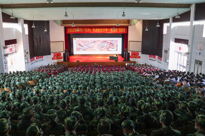 面向自治区交通运输系统的这场专题党课,主会场设在我校园湖校区大礼堂。我校正在接受军训的新生和党员教师代表1200多人聆听了党课报告。