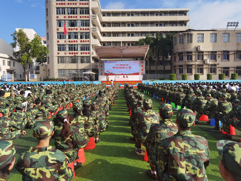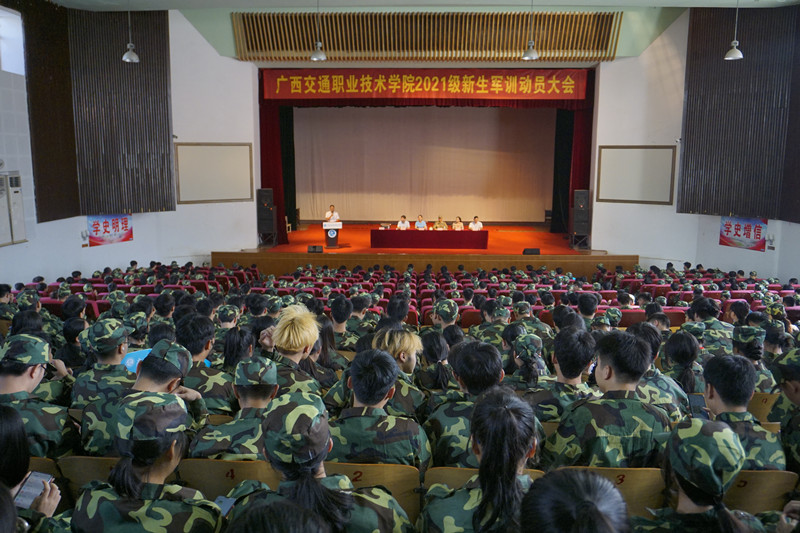 军训动员大会在庄严的国歌声中拉开序幕。学校领导结合建党100周年、习近平总书记在“七一”重要讲话中关于全面加强国防和军队现代化建设的重要论述、学校作为广西唯一军队士官直招定点培养院校近年来在国防教育和征兵工作中的优异成绩发表了“赓续红色血脉