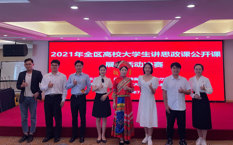 (思政部 讯 朱青穗 付漓漓/文、图)近日,由广西壮族自治区教育厅主办、南宁师范大学马克思主义学院承办的2021年全区高校大学生讲思政课公开课展示活动决赛圆满收官。我校汽车工程学院汽检2020-6班雷杰同学在比赛中发挥出色,在全区本科、专科院校60多名选手中脱颖而出,荣获大赛一等奖,并将代表广西参加全国高校大学生讲思政课公开课活动。