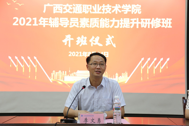 会上,李文勇校长结合党史学习教育、辅导员队伍成长和开创“大学工”“大思政”工作局面为本次研修班作动员讲话。他指出,辅导员队伍是确保学校稳定和高质量发展的一支中坚力量,辅导员要秉承“围绕学生、关照学生、服务学生”的工作理念,争做“四有学工好老师”,提出“工作理念要有高度、工作思路要有深度、工作方法要有温度”的学生思政教育和管理工作要求。