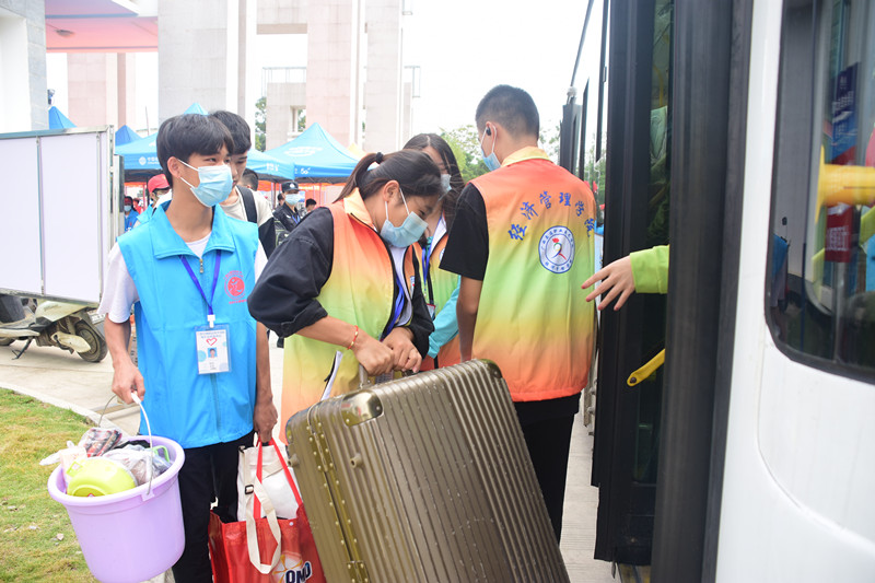 根据疫情防控的相关规定,今年新生家长及车辆不得入校,学校贴心地在校门口为家长们搭建休息区,提前准备好座椅和饮品;校道上、广场边随处可见别出心裁的横幅和创意展板,承载着交院对新生们最诚挚的欢迎;身穿红马甲的“小蜜蜂”、别着“执勤”袖章的义务消防队队员精准服务每一位新生,搬运行李、协助办理各项入学手续;校内外专属接驳车点对点分批接送,为学生们平安、便捷入校保驾护航。迎新现场各环节衔接有序、高效通畅,迎新师生们用热情细致的服务和关怀,带给新生们满满的归属感。