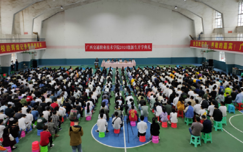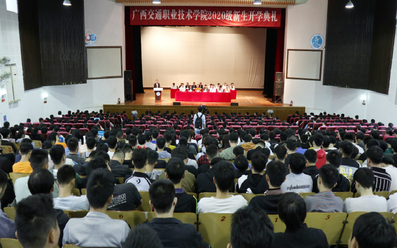 李校长首先欢迎全体2020级新生加入到交院大家庭,从此成为“交院人”。李校长介绍,学校办学历史悠久有传承——经历了62年的砥砺发展,培养了近10万名优秀人才,成为国家优质高等职业院校、全国交通运输职业教育示范院校、广西首批“双高”建设单位;学校交通特色很鲜明——学校开设有43个交通类专业(方向),打造了路桥、汽车、物流运输、交通信息、土木建筑、轨道、港航等交通特色专业群,是目前全区唯一一所培养交通运输类专门人才的高等学校;学校产教融合是核心——深入实施“产教融合、校企合作、工学结合、知行合一”现代职业教育模式,大力弘扬工匠精神,教育引导广大青年走技能成才、技能报国之路;学校国际交流也亮眼——目前与15个国家和地区的18所高校和企业开展联合培养人才和项目共建,是中国-东盟交通职教联盟副理事长单位和广西首批国际(区域)交流合作试点院校。学校着力为大家提供一个良好的学习生活环境和成长成才平台。