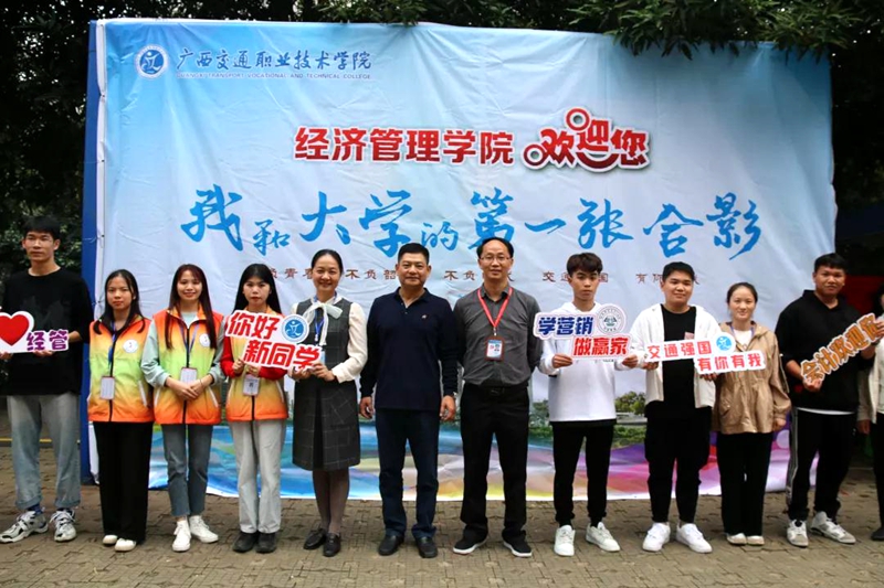 学校党委书记温宗胤、校长李文勇、党委副书记莫海燕来到2020级同学中间,与大家合影