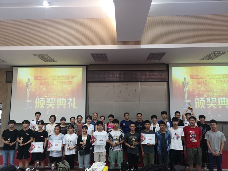 (基础教学部 袁柠、张晓雁/文 、图)6月11日,由学院团委、基础教学部共同举办的第三届交院奥斯卡英语微电影大赛颁奖活动在昆仑校区举行,共有来自全院各专业学生自导自演的18部英语微电影作品获得最佳影片等奖项,会上同时还进行了由基础部举办的全院学生英语单词王比赛获奖选手的颁奖。