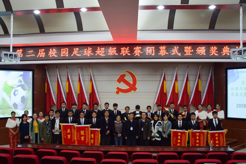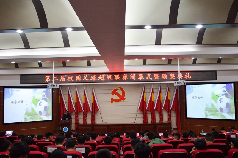 (学生工作处 团委 讯 张佺、莫沉/文 容传毅/图) 12月25日,我院第二届校园足球超级联赛闭幕式暨颁奖典礼在昆仑校区第一学术报告厅举行。学生工作处、基础教学部相关负责人、各系体育委员、足球爱好者共200余人参加了活动。