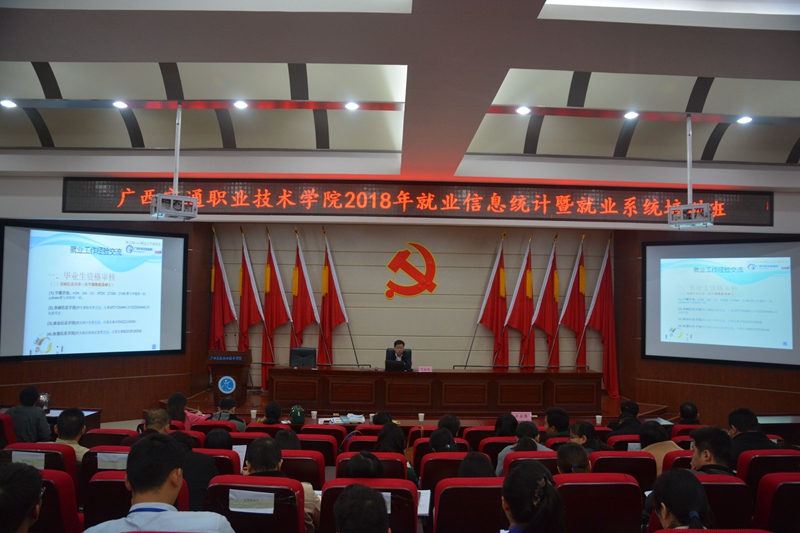 (招生就业处 讯) 12月25日,招生就业处在昆仑校区第一学术报告厅举行2018年就业信息统计暨就业系统培训会。本次培训由广西大学生就业服务中心副主任于胜伟和广西南宁九铭信息科技有限公司经理吴宗隆主讲。各系分管就业的负责人、就业干事、辅导员及招生就业处就业创业工作人员参加了本次培训。