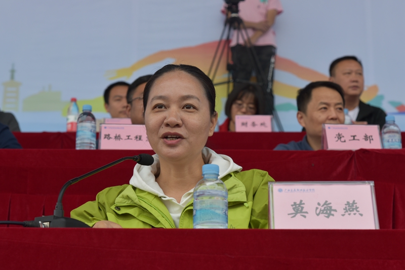 在闭幕式上,学院党委副书记、纪委书记莫海燕作了讲话,向在运动会中取得优异成绩的代表队、运动员们表示热烈的祝贺!向为成功举办本届运动会辛勤付出的组委会、裁判员、工作人员表示衷心的感谢!希望全体师生员工以昂扬的斗志、崭新的姿态、饱满的激情、进取的精神,为全面推进学院教育教学改革,开创学院更加美好的明天而努力奋斗。