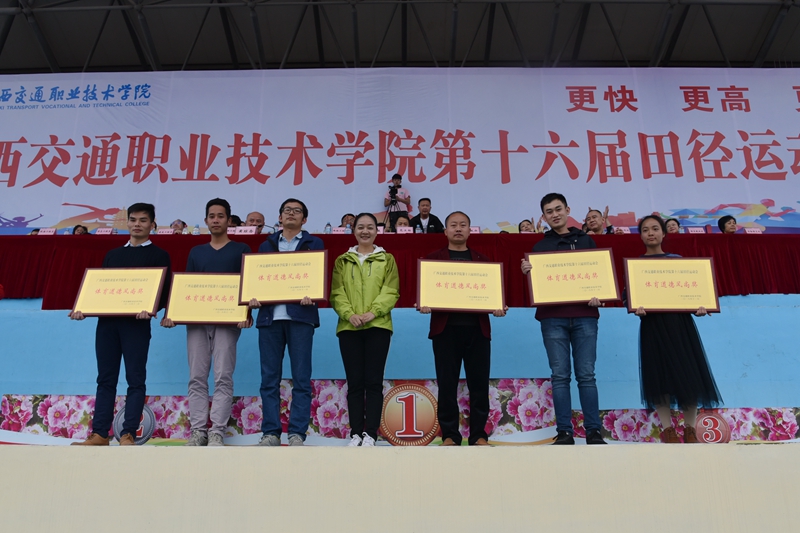 闭幕式上,学院副院长黄琼念宣布集体项目获奖名单以及比赛成绩。经过激烈竞技比拼,运动健儿们取得了优异的成绩:建筑工程系获团体总分第一名;路桥工程系获得团体总分第二名;管理工程系获得团体总分第三名。其中,路桥工程系、汽车工程系、管理工程系、交通信息工程系、建筑工程系、航海工程系等6个系部获得“体育道德风尚奖”和“优秀组织奖”。在欢快的乐曲声中,学院党委副书记、纪委书记莫海燕为获奖集体颁奖。