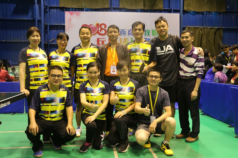 本次比赛分设校长组、混合团体组两个组别。我院代表队以小组第2名出线后,在16进8比赛中,遇到了劲敌玉林师范学院代表队。比赛对决胶着、扣人心弦,前三局你追我赶,难分胜负。我院全体队员沉着冷静,在教练和队友们的鼓励支持下,及时调整战略方针,敢于拼杀,最终以4:3 成功逆转,为本场比赛拿下关键的一分。在之后的比赛中,我院参赛代表队分别遇到了老牌强手广西财经学院代表队、广西卫生职业技术学院代表队。最终,我院获得团体第7名,并获“体育道德风尚奖”,刷新学院历年参加全区高校教职工乒乓球比赛团体成绩记录。