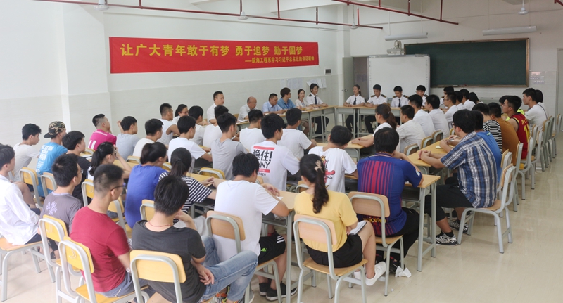 航海工程系主任唐锋结合工作实际发表了个人观点和看法。他认为,大学生应认真学习领会习近平总书记重要讲话,大学是青年学生长知识、长才干的关键时期,青年学生要有期待和梦想,不畏摔打、挫折、考验,努力学习,让青春无悔。