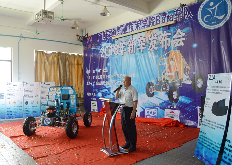 (汽车工程系 讯) 7月2日,学院Baja车队第三辆赛车发布会在四塘校区汽车楼二楼大厅举行。学院副院长黄琼念参加了此次新车发布会。