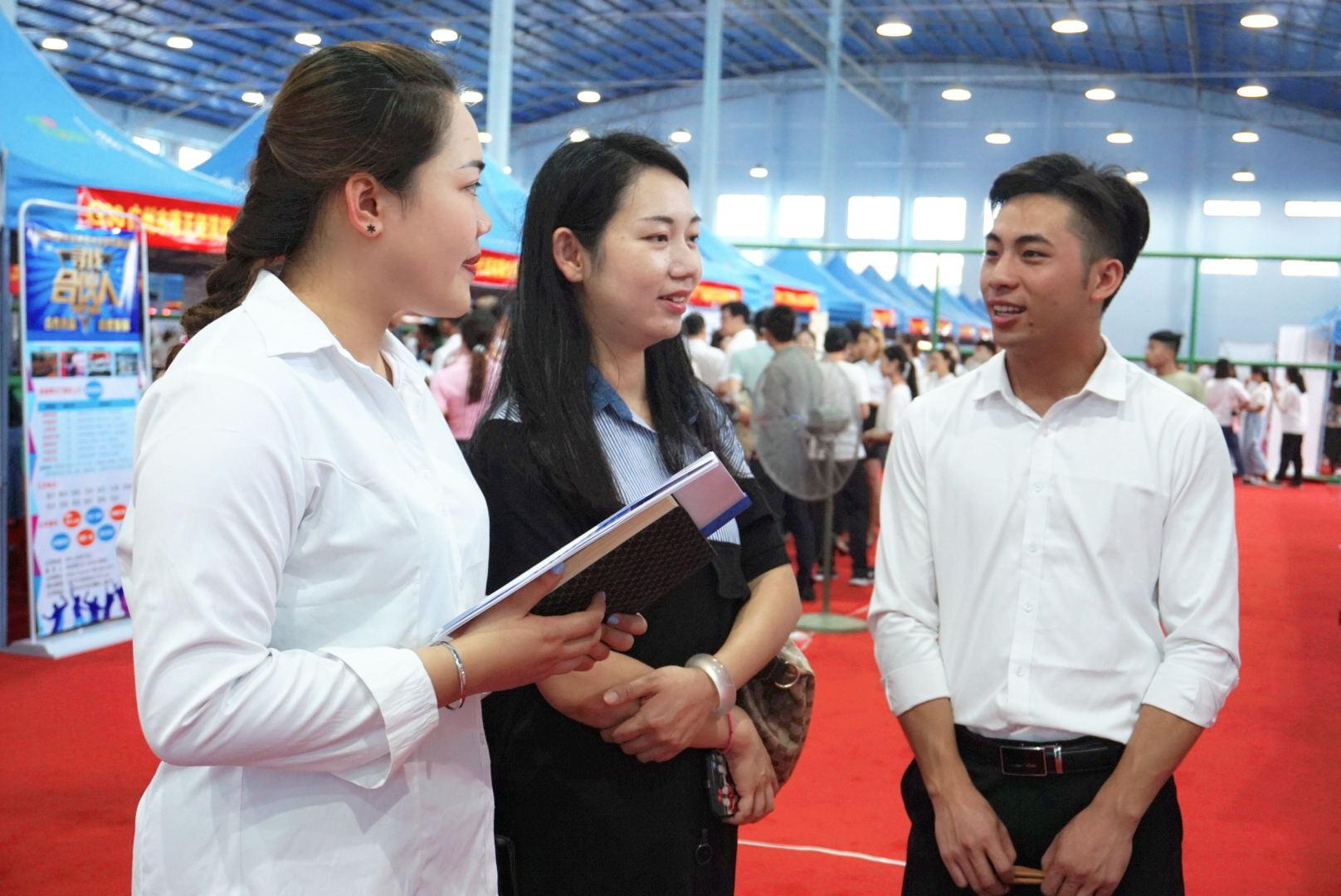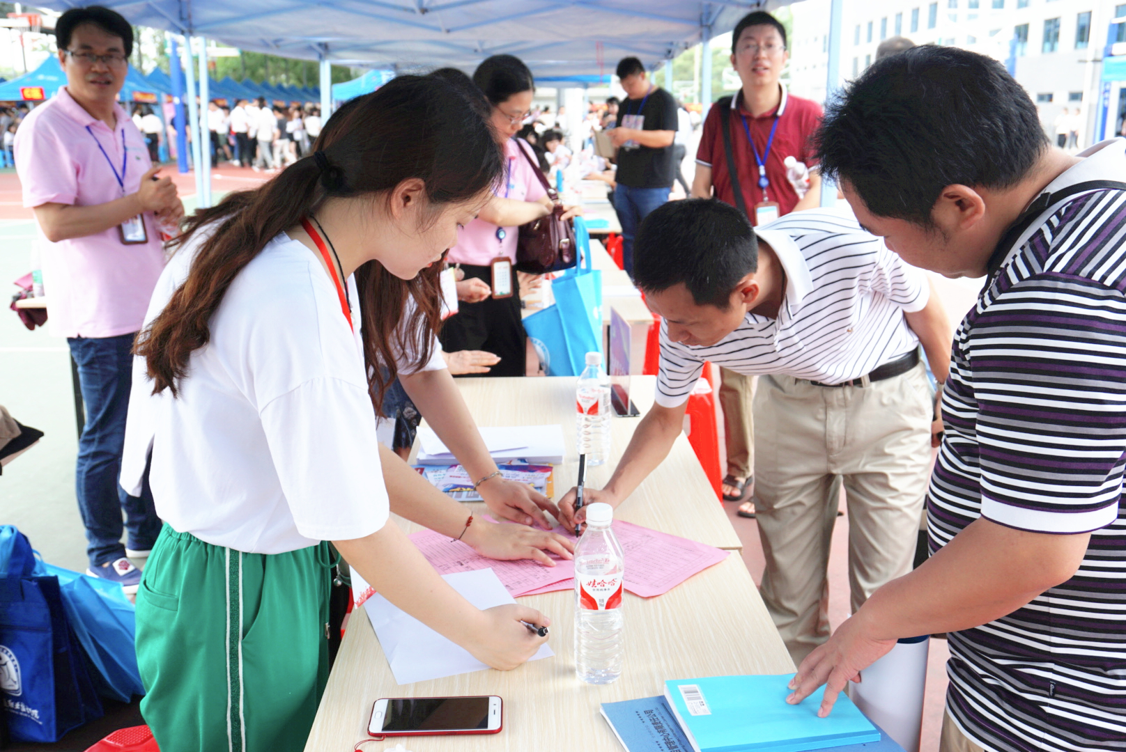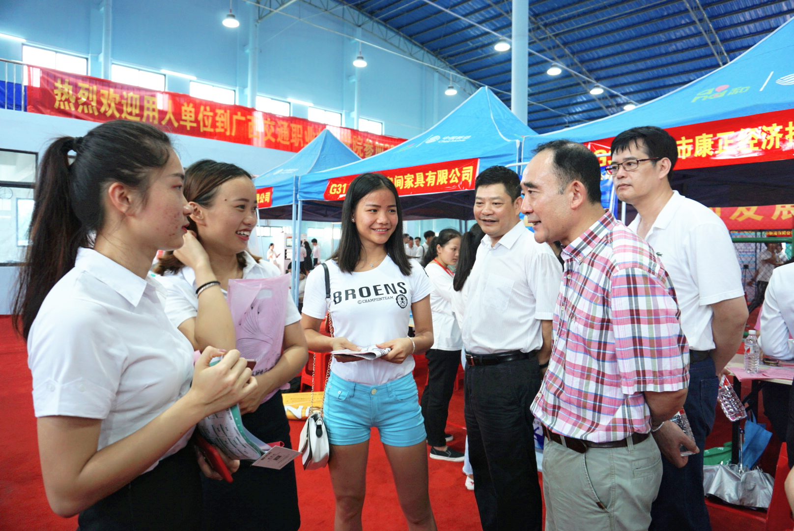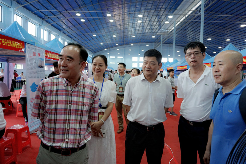 (党委工作部 招生就业处 讯 朱青穗/文、图)6月12日,学院2018年毕业生夏季校园双选会在四塘校区运动场球类运动馆成功举办。学院党委书记温宗胤,院长程轮,党委副书记、纪委书记莫海燕,副院长陈海峰到双选会现场指导工作。各系部负责人、专业教师、学生辅导员等到会与用人单位现场对接。
