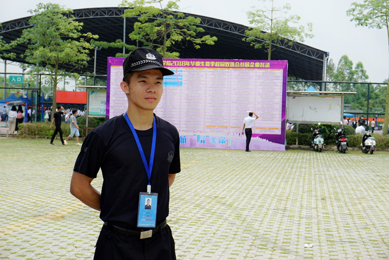 学生义务消防队成员认真维护双选会现场秩序