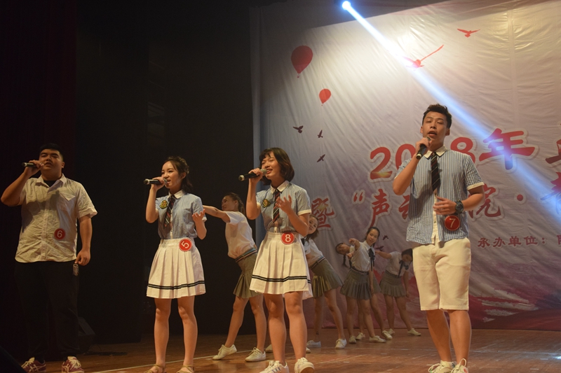 2018年五四表彰大会圆满結束后,历经海选、初赛、复赛激烈角逐的8名选手进入了我院第一届校园歌手大赛总决赛。比赛分为两个环节,第一环节帮帮唱,8位选手携手搭档依次演唱,选出前五名,进行第二环节冠军争夺赛。选手们动情投入的演唱和充满个性的自我展示让观众看得如痴如醉,热烈欢呼。