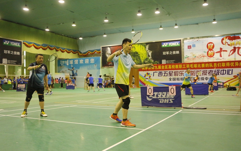 (工会 讯 龚春鸣/文、图) 5月9日-11日,自治区教育厅主办、广西警察学院承办, 广西学校体育卫生艺术学会协办的第九届全区高校教职工羽毛球比赛在广西警察学院长湖校区举行。全区41所高校近600名运动员参加了比赛。