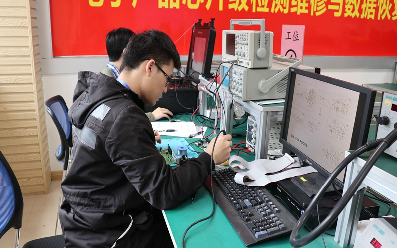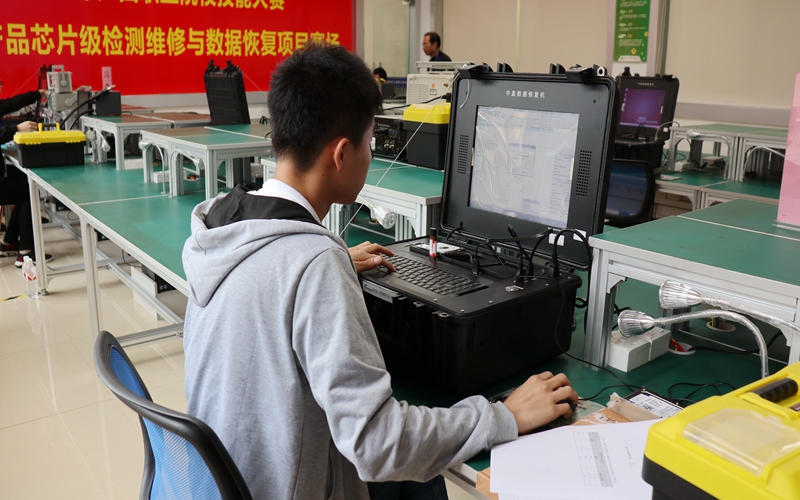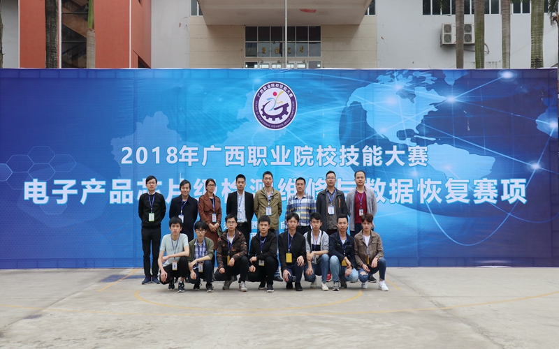 3月26日,2018年广西职业院校技能大赛电子产品芯片级检测维修与数据恢复赛项(高职组)在学院园湖校区进行比赛。电子产品芯片级检测维修与数据恢复赛项以电脑主板芯片级维修及硬盘数据恢复技术为载体,将电子产品芯片级检测维修与数据恢复的前沿技术及技能融入比赛内容,主要检验选手在模拟真实的工作场景下对电子产品芯片级检测维修及数据恢复的技能和综合职业素养,为行业、企业培养紧缺人才,提高电子信息类高素质、高技能应用型人才的培养质量。