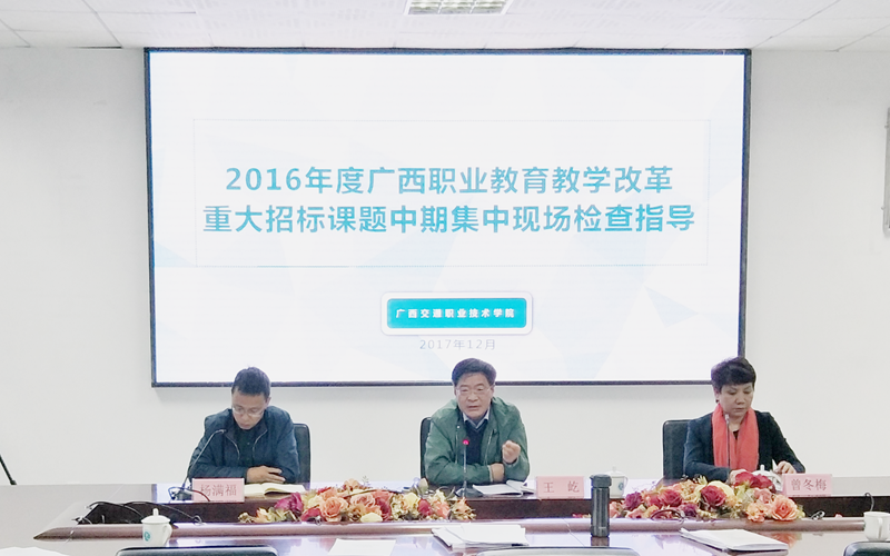 (教务处 讯 陈均康、吴雨、张立玮/图、文) 12月7日,2016年度广西职业教育教学改革重大招标课题中期检查指导会议在我院园湖校区图书馆四楼会议室召开。会议由专家组组长王屹教授主持。