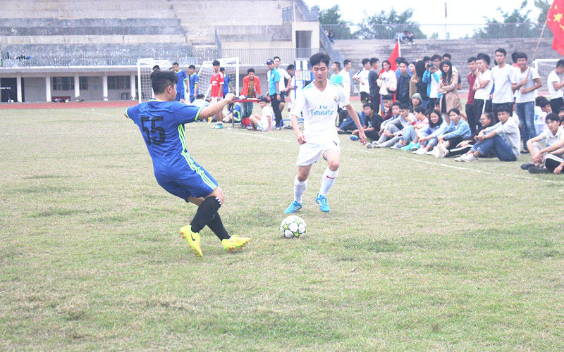 (学生工作处 团委 基础部 讯 张佺、莫沉/文 容传毅/图)11月14日下午,学生工作处、团委主办,基础教学部协办的学院第一届校园足球超级联赛在四塘校区田径运动场正式拉开序幕。