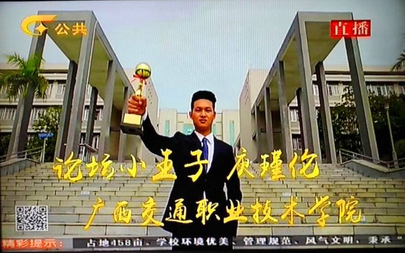(学生工作处 团委 管理工程系 讯 李倩、盘慧凤/文 李倩/图)11月18日晚,我院管理工程系学子庾瑾伦前往广西电视台参加《挑战技能王》节目并获好评。
