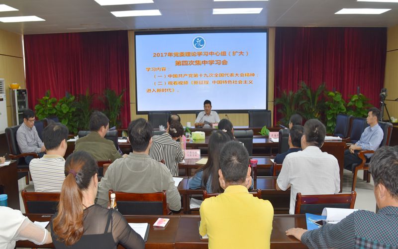 (党委工作部 讯 张丽梅、黄福秀/文) 11月3日下午,学院召开2017年党委理论学习中心组(扩大)第四次集中学习会,深入学习十九大精神。学院党委书记温宗胤,院长程轮,党委副书记、纪委书记莫海燕,副院长黄琼念、韦红教、陈海峰,全院中层领导干部以及广西交通运输学校领导班子成员参加了学习会。会议由党委书记温宗胤主持。
