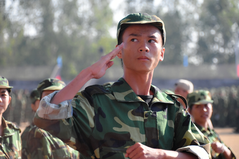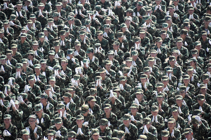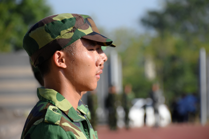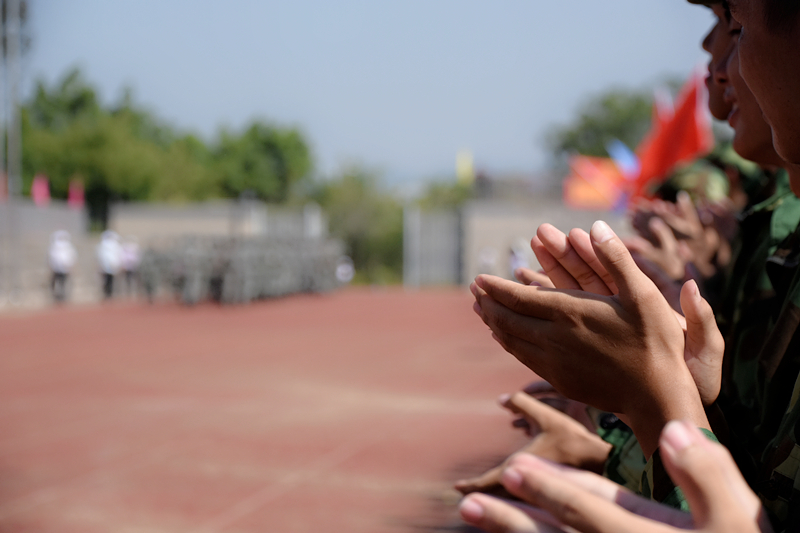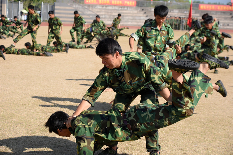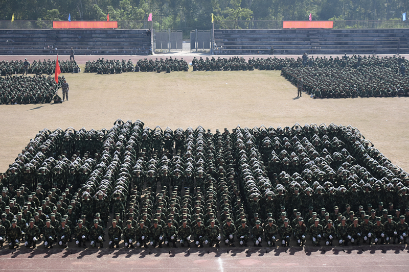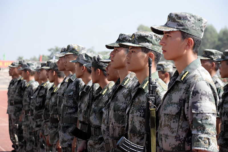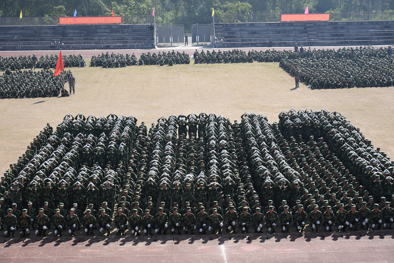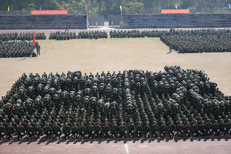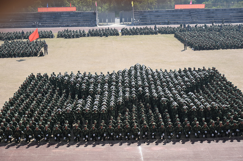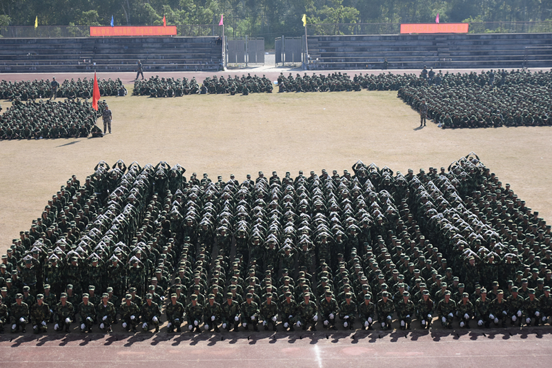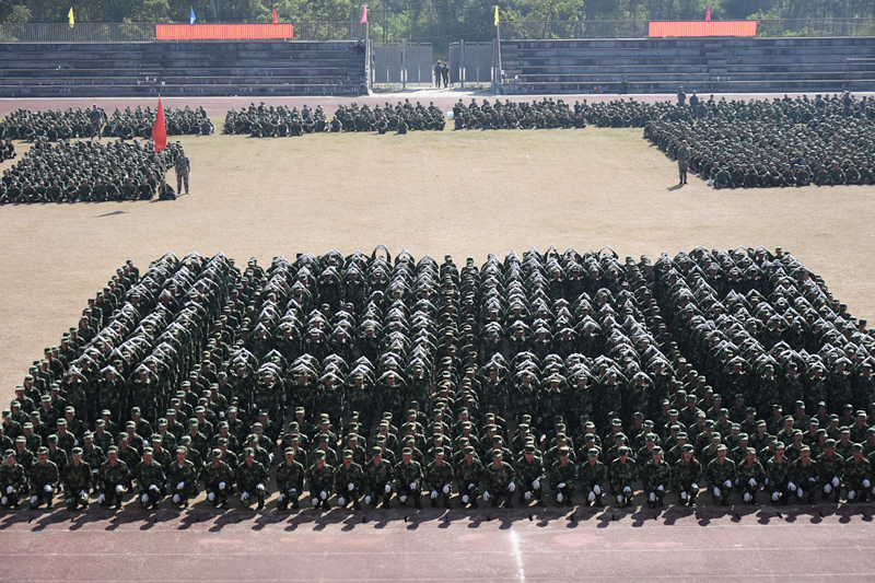 (图片新闻 朱青穗、雷裕欢/图)9月28日上午,学院在四塘校区田径运动场隆重举行2017级新生军训会操大会。