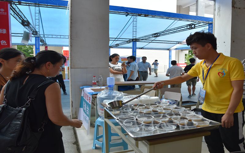 同时,学院后勤保卫处在新生报到大本营设立了免费饮用水和绿豆汤,为远道而来的新生及家长提供清凉、降温解暑的饮品。
