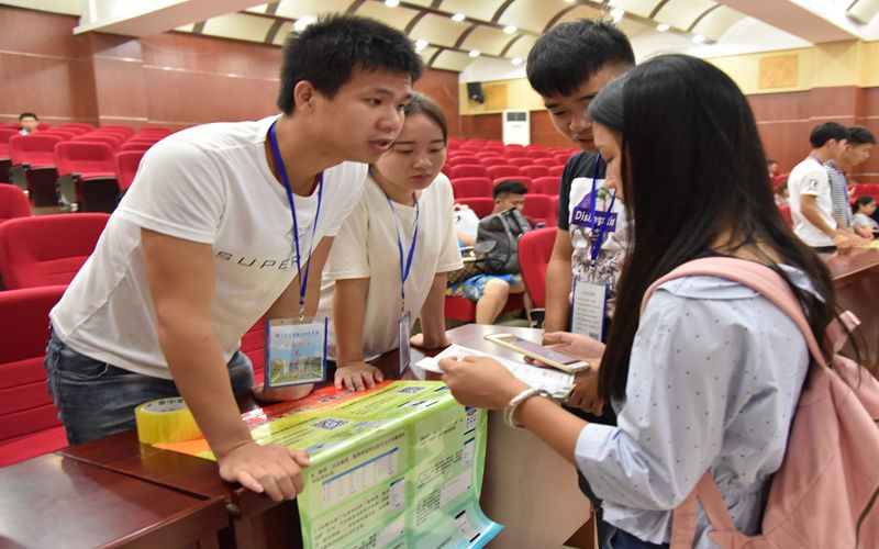 新生报到当天,各系迎新区的工作人员为了给新生报到提供便捷、周到的服务,师生们一早就着手各项准备工作。在接待现场的显眼位置,学院张贴了简洁明了的新生报到流程图和校园平面图,方便新生及家长了解报到基本流程和校园环境。各系还专门设置行李存放处,为新生快速办理入学手续保驾护航,给新生营造良好舒适的入学体验。
