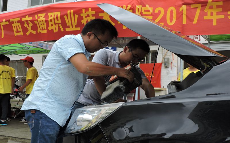 同时,汽车工程系汽车整形技术专业教师廖俊生、工程机械专业教师李程武带着志愿者们开展的车辆检测、美容和维护义务服务、农机使用和维护小技巧宣传活动也获得当地村民的广泛好评。在开展义务检修活动的过程中,志愿者们既增强了实践操作能力又提升了专业认同感。