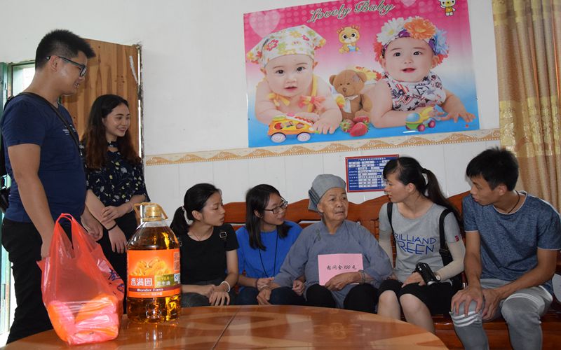 在慰问村部老党员活动中,社会实践团成员与老党员促膝交谈,忆传统、话发展并为老党员们送去了慰问品。