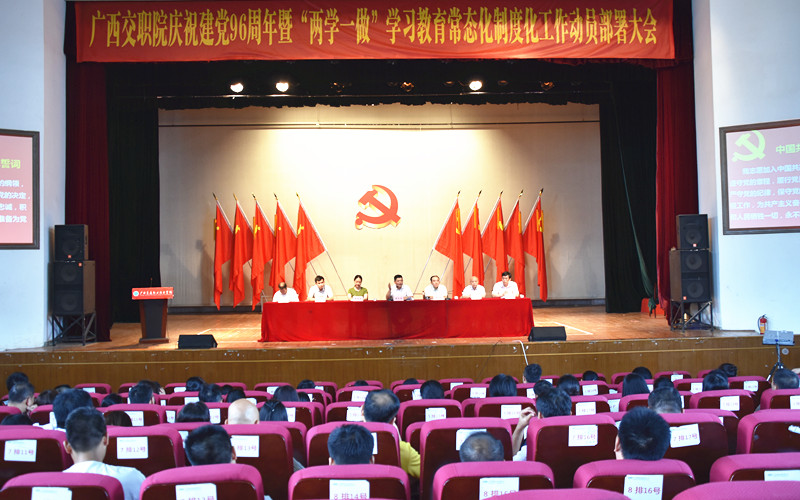 梁友佳、张丽梅/图)6月30日下午,我院在园湖校区大礼堂召开庆祝中国共产党成立96周年暨“两学一做”学习教育常态化制度化工作动员部署大会。学院党委书记温宗胤在讲话时强调,我们回顾历史就是要唤起共产党人牢记历史,不忘初心,只有充分发挥每一个党组织的战斗堡垒作用,发挥每一个共产党员的先锋模范作用,才能保障党和国家的事业不断取得胜利。